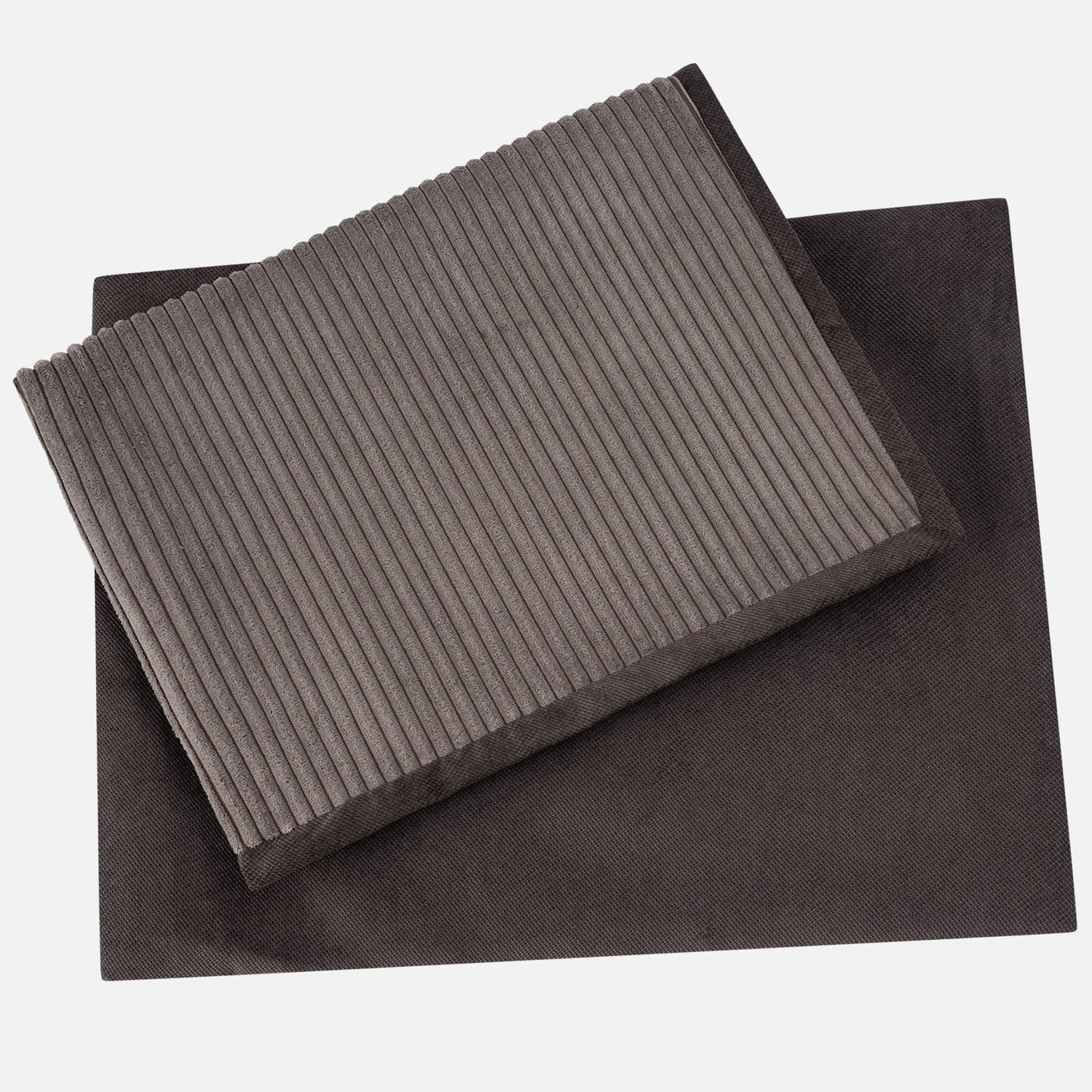 Omkeerbare donkerbruine knusse deken met twee verschillende stoffen kanten. De perfecte aanvulling op het Truffle corduroy hondenbed.